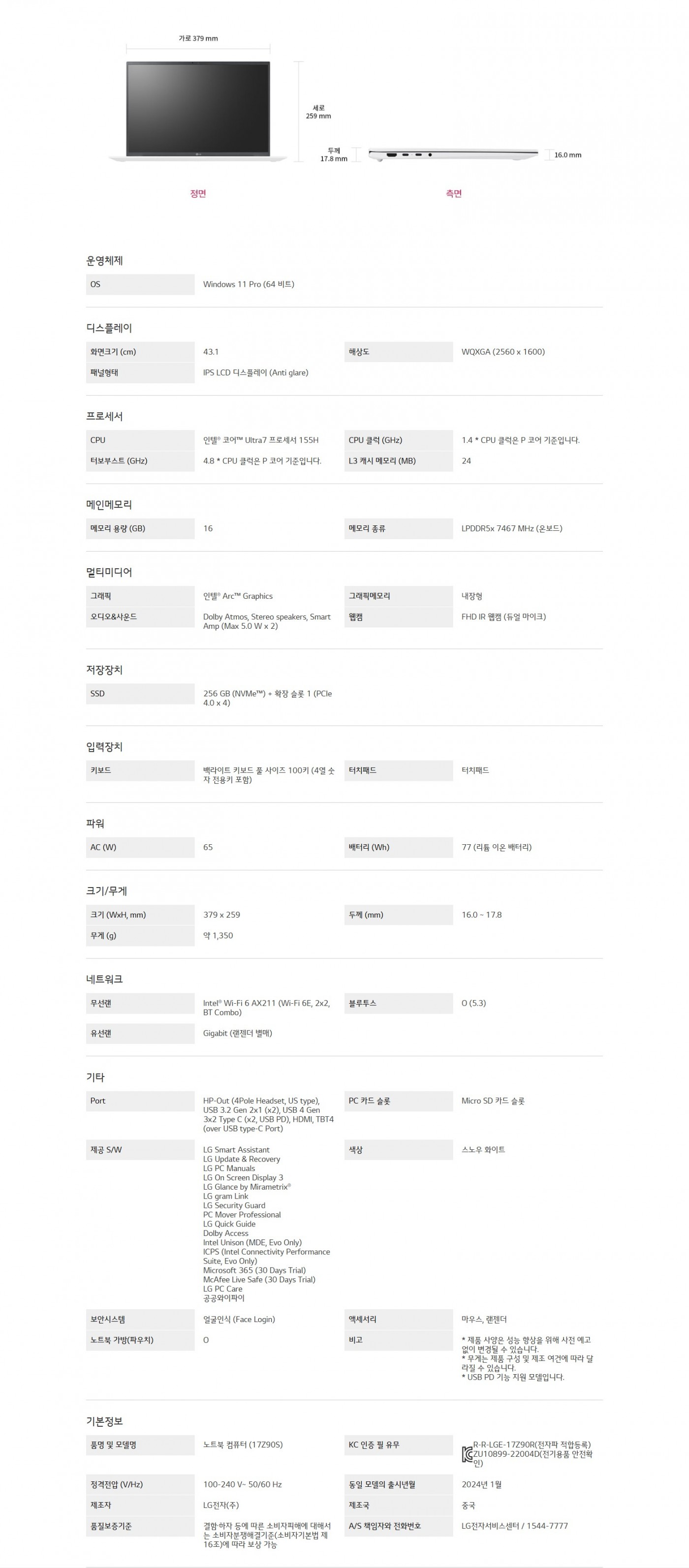 OS:WINDOWS 11 PRO (64 비트) CPU:인텔® 코어™ ULTRA7 프로세서 155H SSD:256 GB (NVME™) + 확장 슬롯 1 (PCIE 4.0 X