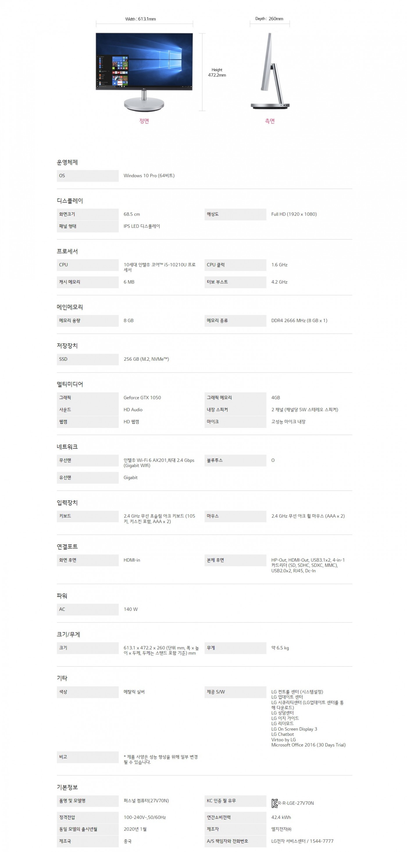 CPU : 10세대 인텔® 코어™ i5-10210U 프로세서