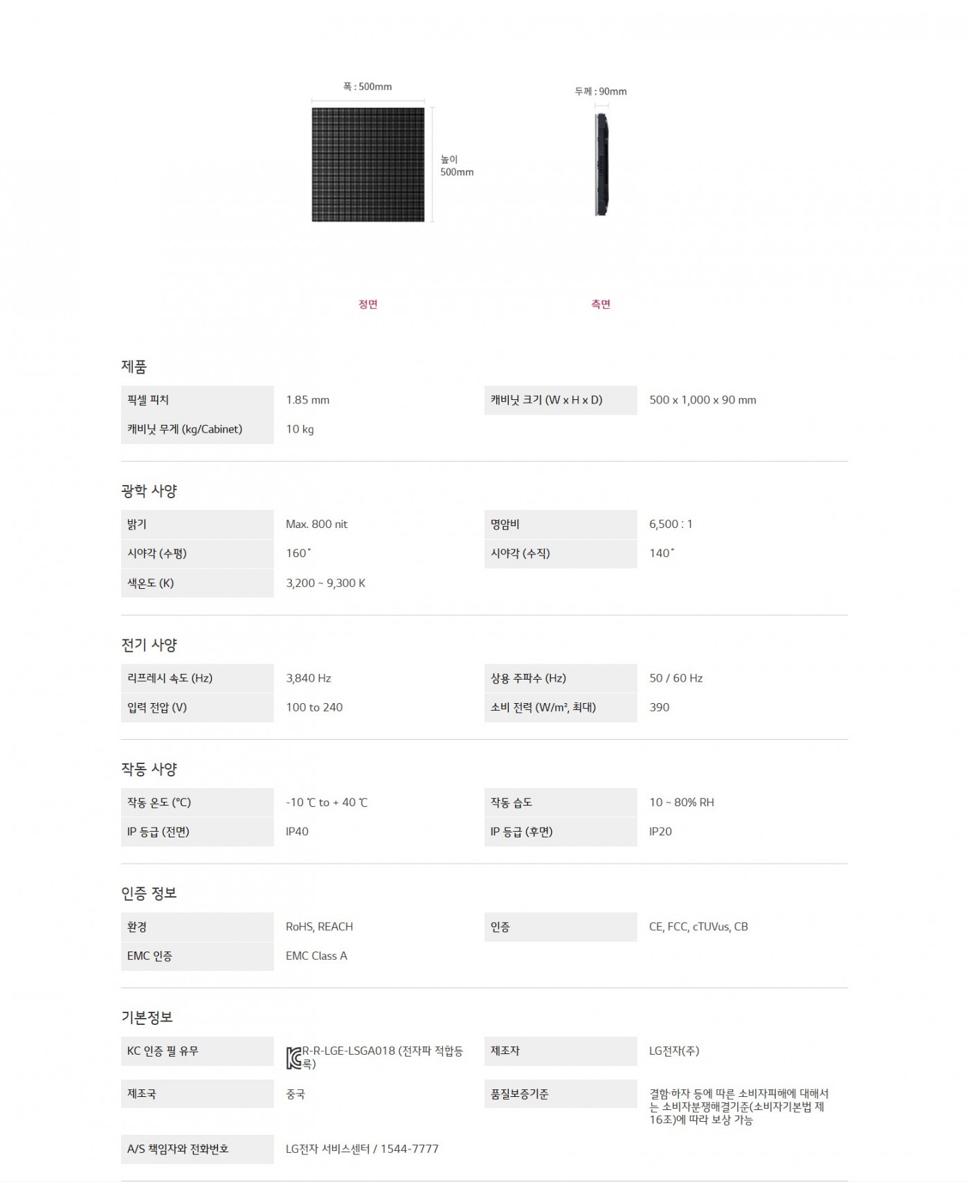 캐비닛 크기 (W x H x D) : 500 x 1,000 x 90 mm