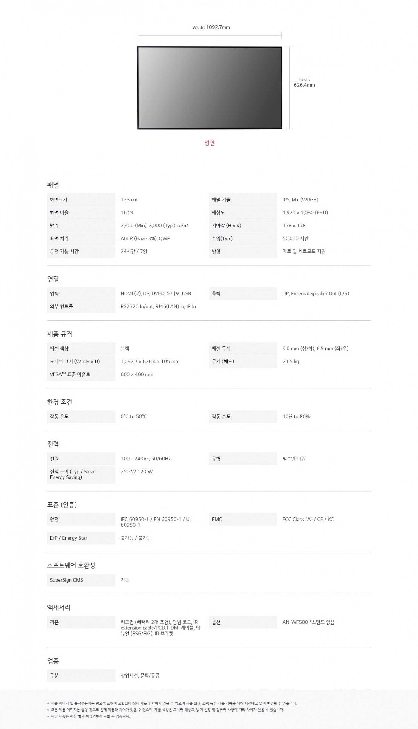 화면크기 : 123 cm