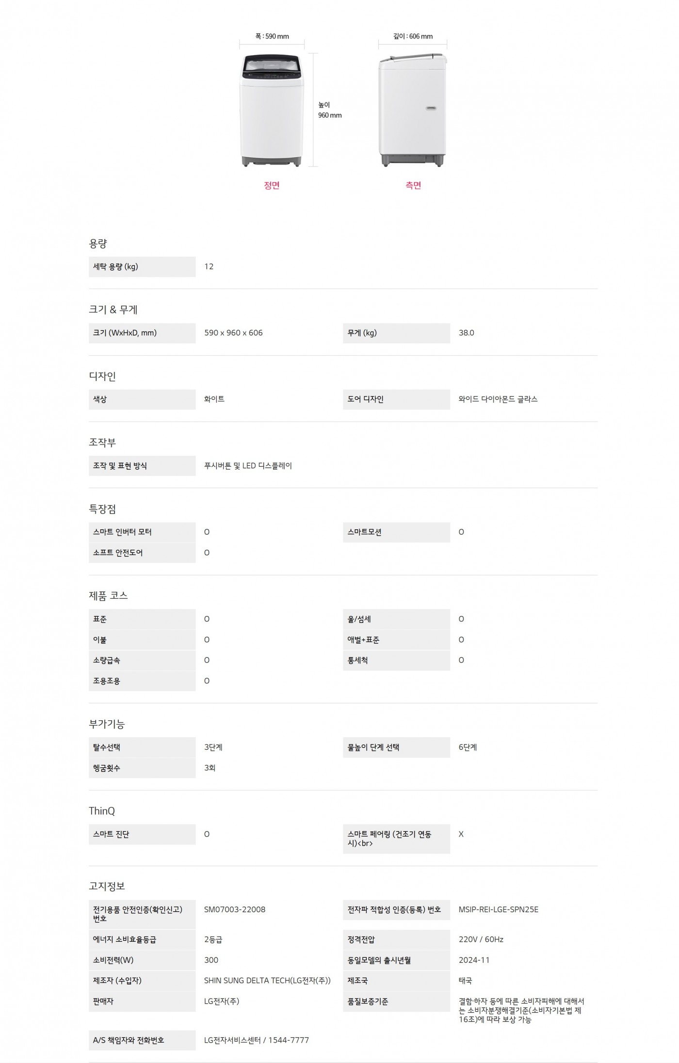 크기 (WxHxD, mm) : 590 x 960 x 606