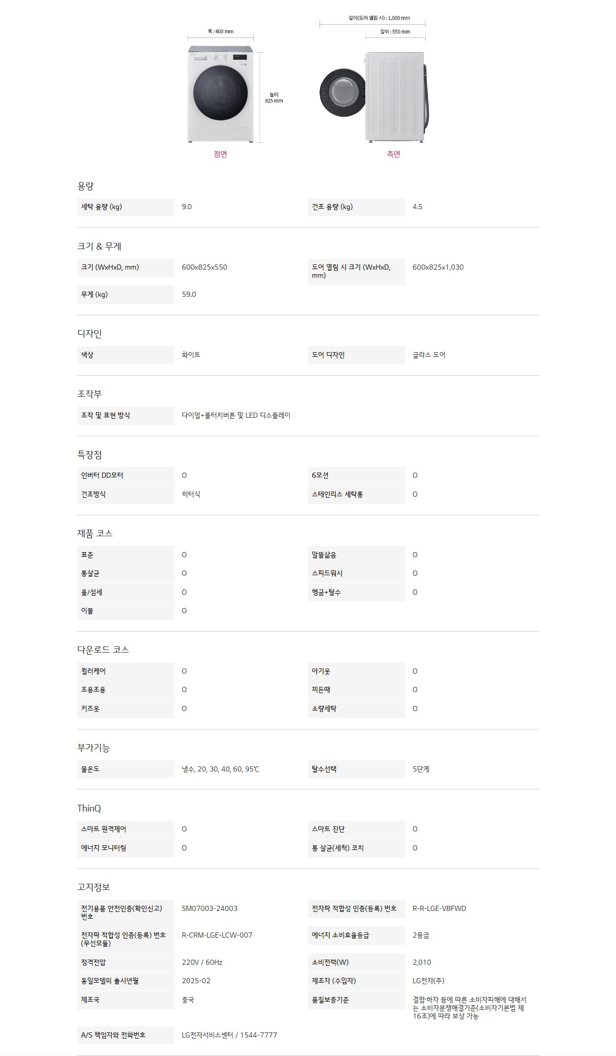 LG 트롬 건조 겸용 세탁기 · 9kg / 4.5kg